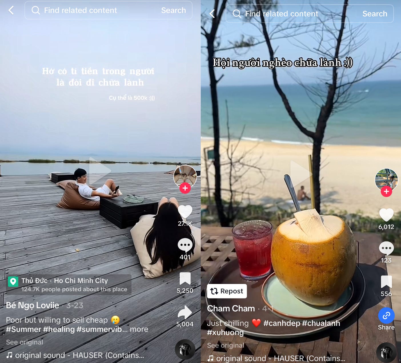 (Image: Screenshots of Vietnamese youths sharing their mental healing trips on TikTok)