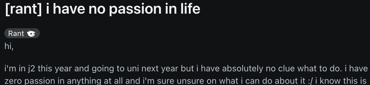On Reddit, it is not uncommon to stumble on students asking for advice because they have no idea what to do in life.