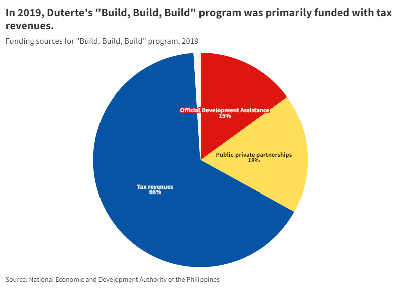 Previously, the Duterte administration’s “Build, Build, Build” program claimed to have nearly US$24 billion in total funding pledged by Chinese companies - nearly 13% to 15% of the overall budget that the administration intended to spend on the program in the medium term.