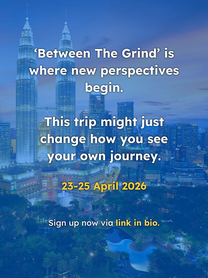 Between the Grind — KL is a curated 3D2N immersion for Singapore-based youths who want to pause, reflect, and rethink how they see work, life, and opportunity — starting in Kuala Lumpur.